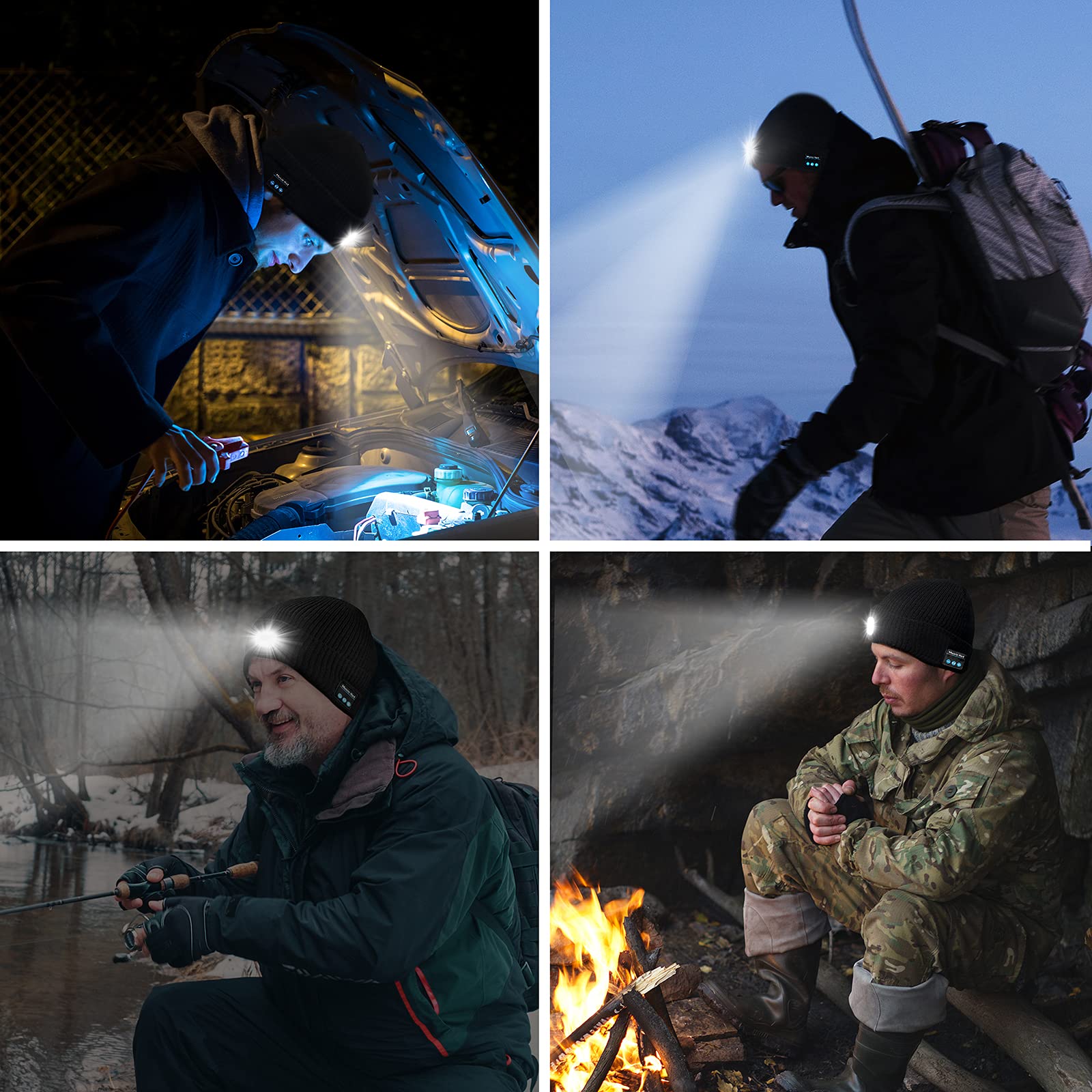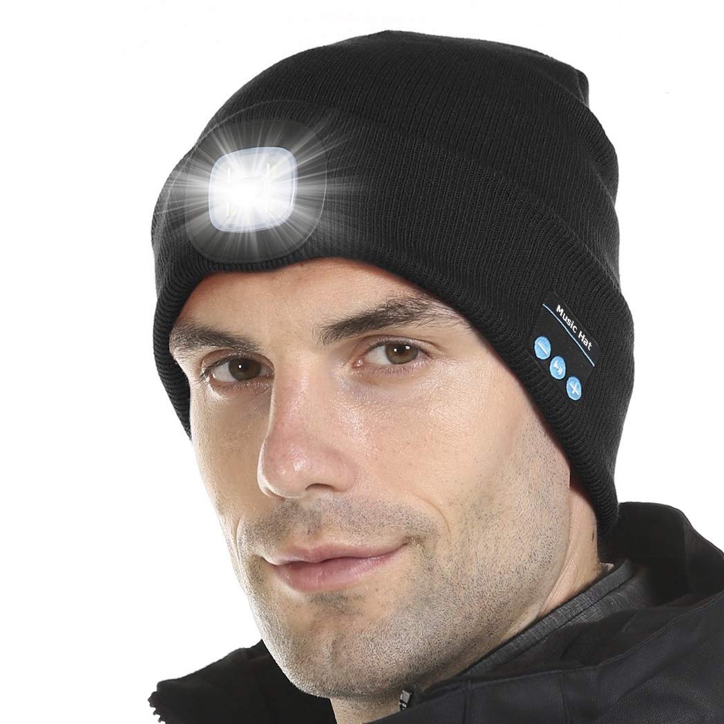 Giftock Bluetooth Beanie Hat with Light, Unisex LED Cap with Headphones Built-in Stereo Speakers & Mic, Tech Gift for Men Women Dad
