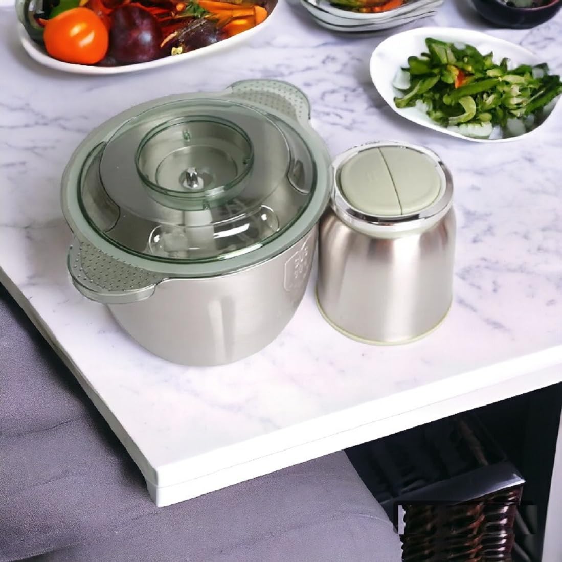 - ?? HEAVY MOTOR & LARGE CAPACITY : Pure Copper Made 700 Watt Motor With 2 Speed Control Electric Food Chopper Grinder mincer Portable Crusher as chop & grind things in just few time to make your meal faster & With 3 LITER Large Steel Bowl Capacity, so that you can grind food in large quantity.