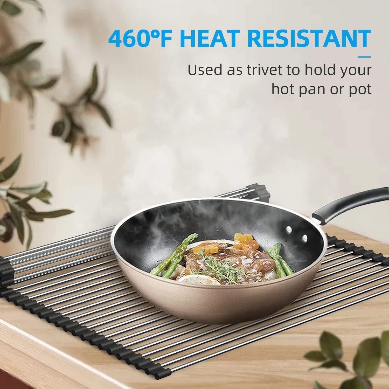 - EASY IN USE - Folding oil-resistant stainless steel drying rack is easily cleaned and is rust resistant which let you wash the mat in a dishwasher. Can support heavy cookware and weights up to 15-20 Kgs and are not easy to bend or twist.