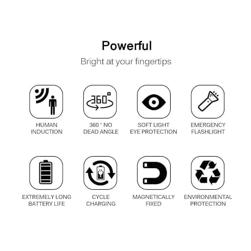 - ~ ENERGY-EFFICIENT: Giftock rechargeable motion sensor light automatically turn on when motion is detected within a 5-10 ft. range, automatically powers off after 15-20 seconds of inactivity, this magnetic motion activated light will lighting your path as you cross and shutting off soon after. Up to 60 lumens output, 6 bright LED beads inside, saving energy.