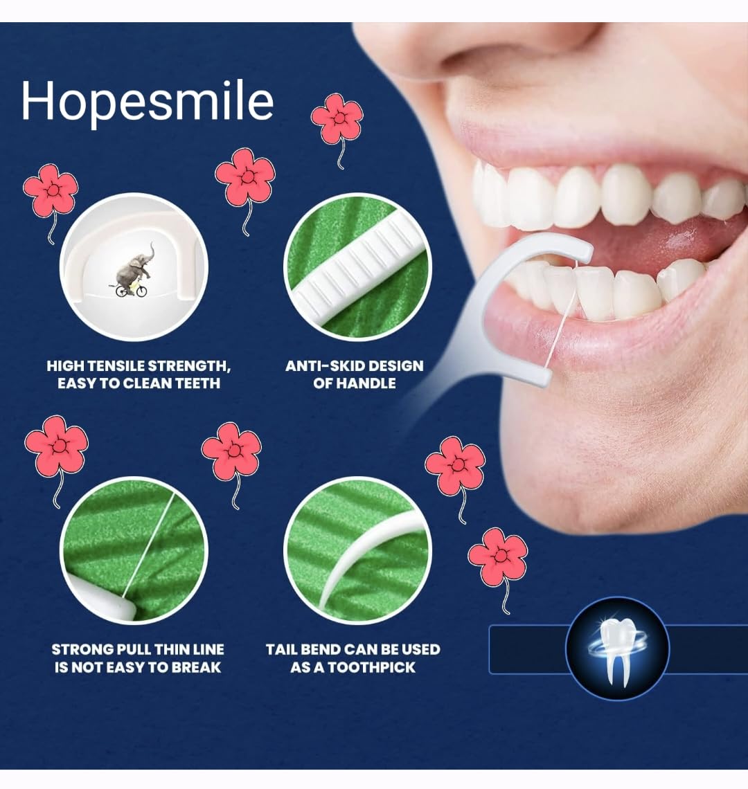 - PACK OF 50 FLOSS WITH TOOTH PICK SET Effectively cleans between teeth: The HFlosser is designed with thin and flexible bristles that easily slide between teeth, ensuring thorough cleaning