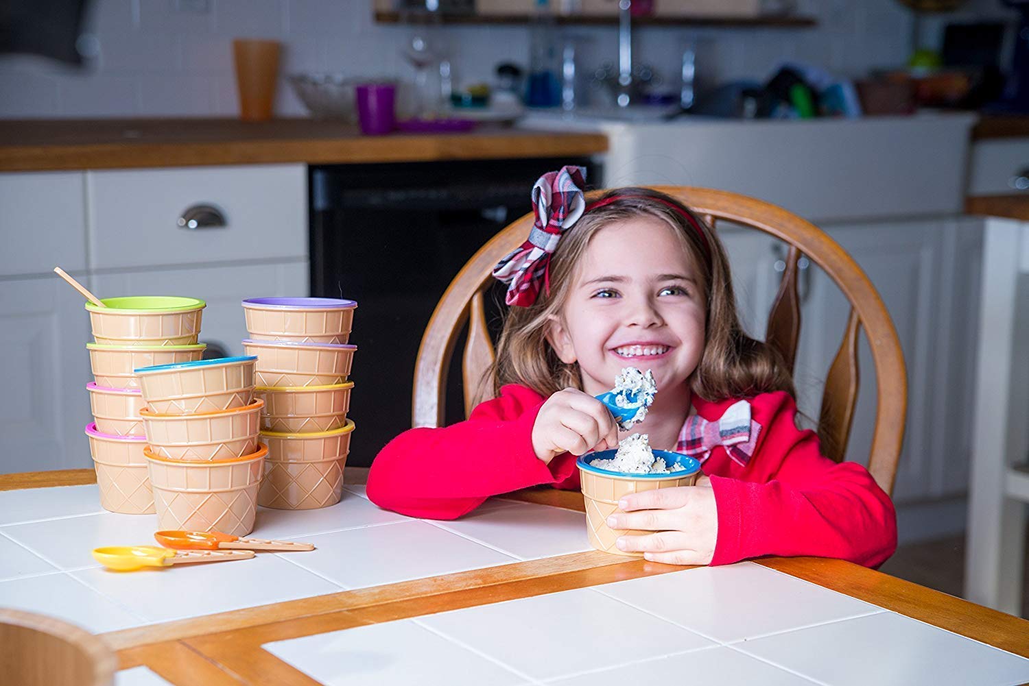 - The Perfect, BPA FREE Durable, Fine Quality, Plastic Made of all new material. Passed all tests. BPA-free and non toxic, reusable plastic Ice Cream Cups with matching spoons.