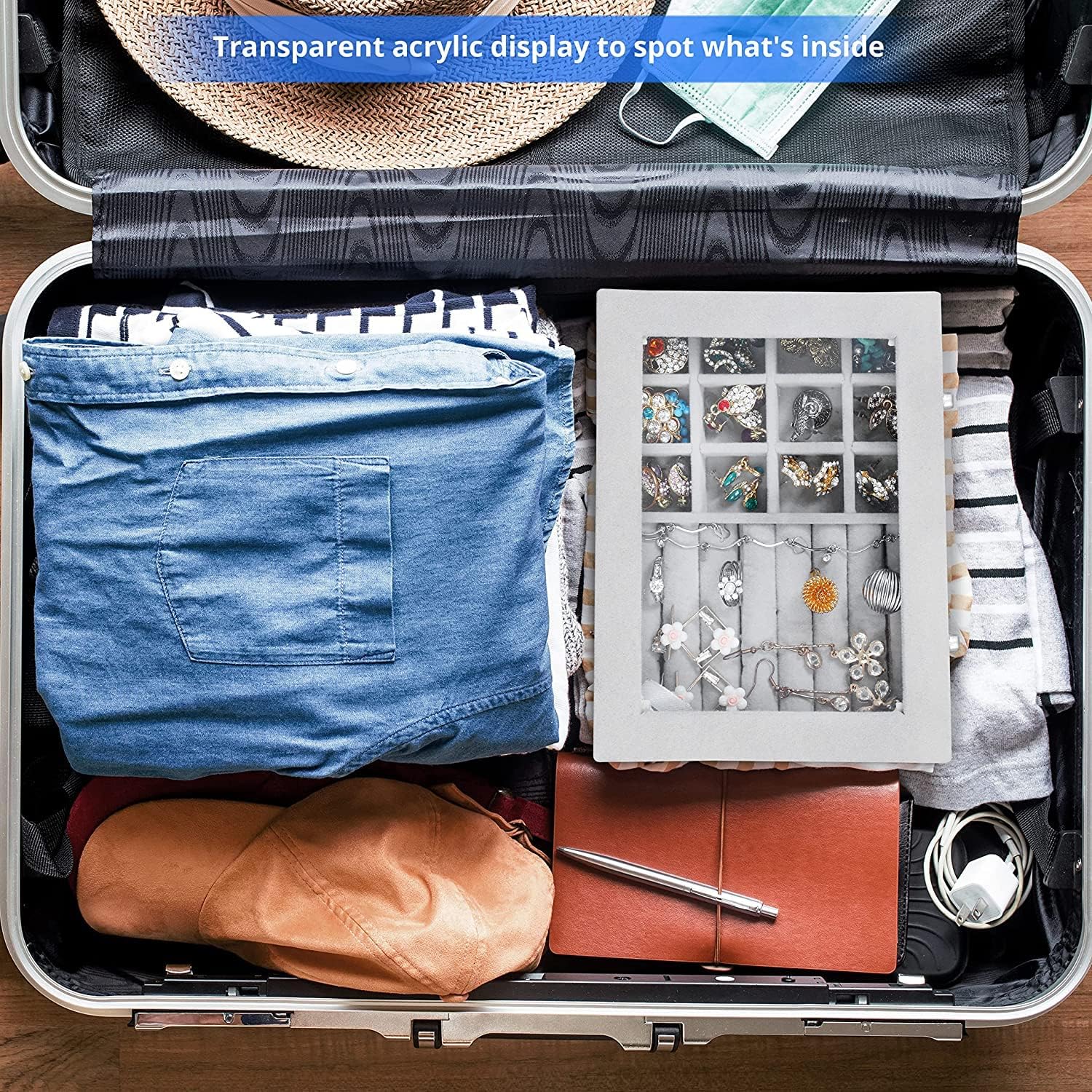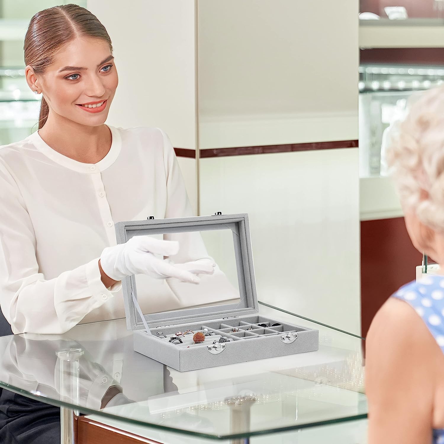 Giftock Jewellery Storage Box - Multipurpose Transparent Velvet Cufflink,Display Ring & Earring Organizer-Adjustable 12 Compartment & 8 Rows for Jewelry,Jhumkas,Stud,Travel Friendly Box for Gifts