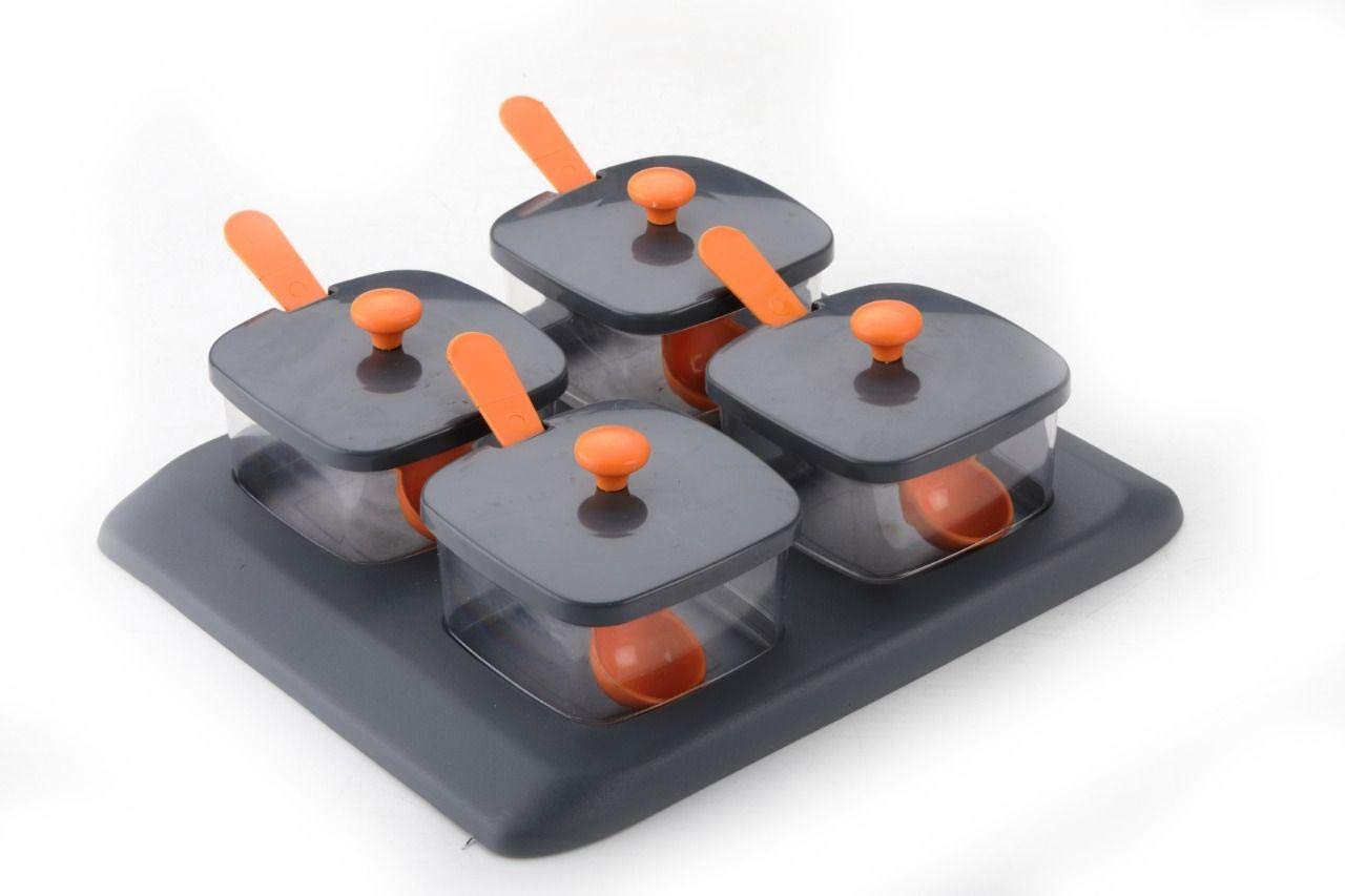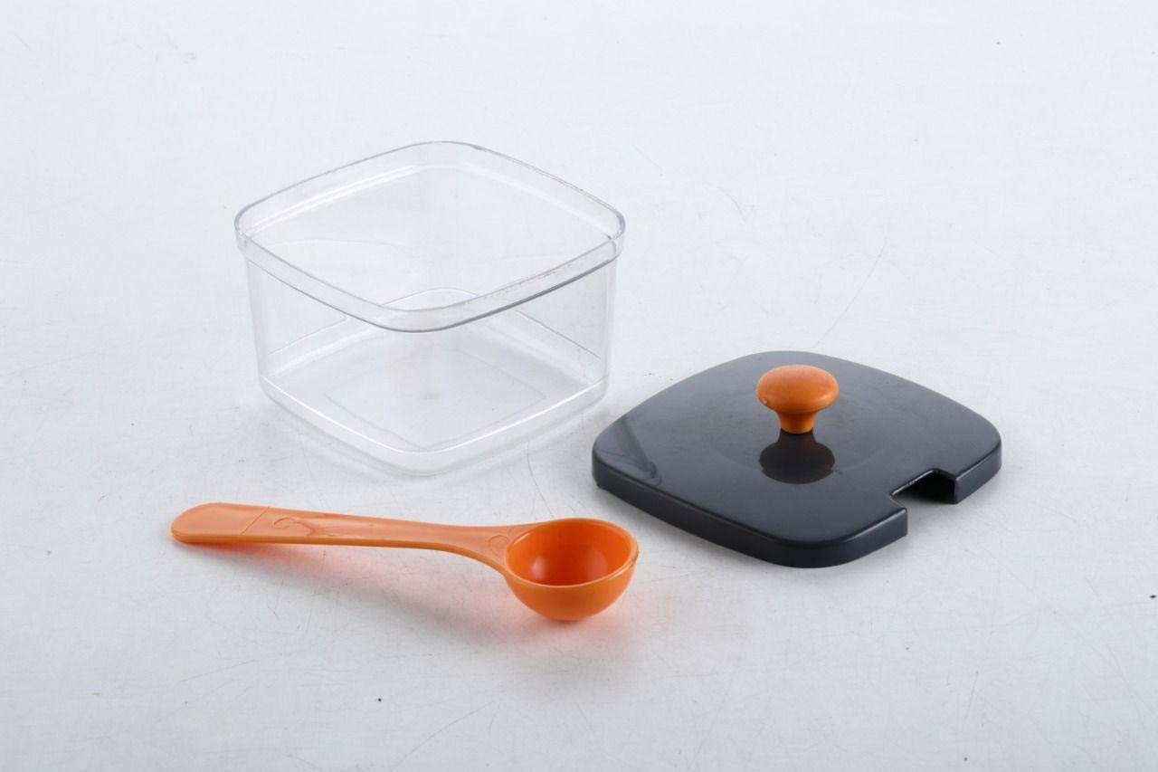 - Made of food grade plastic, non-harmful, not handily harmed, delicate surface. In addition in this 4 Spice Box, The crate's top can be opened by one hand press.
