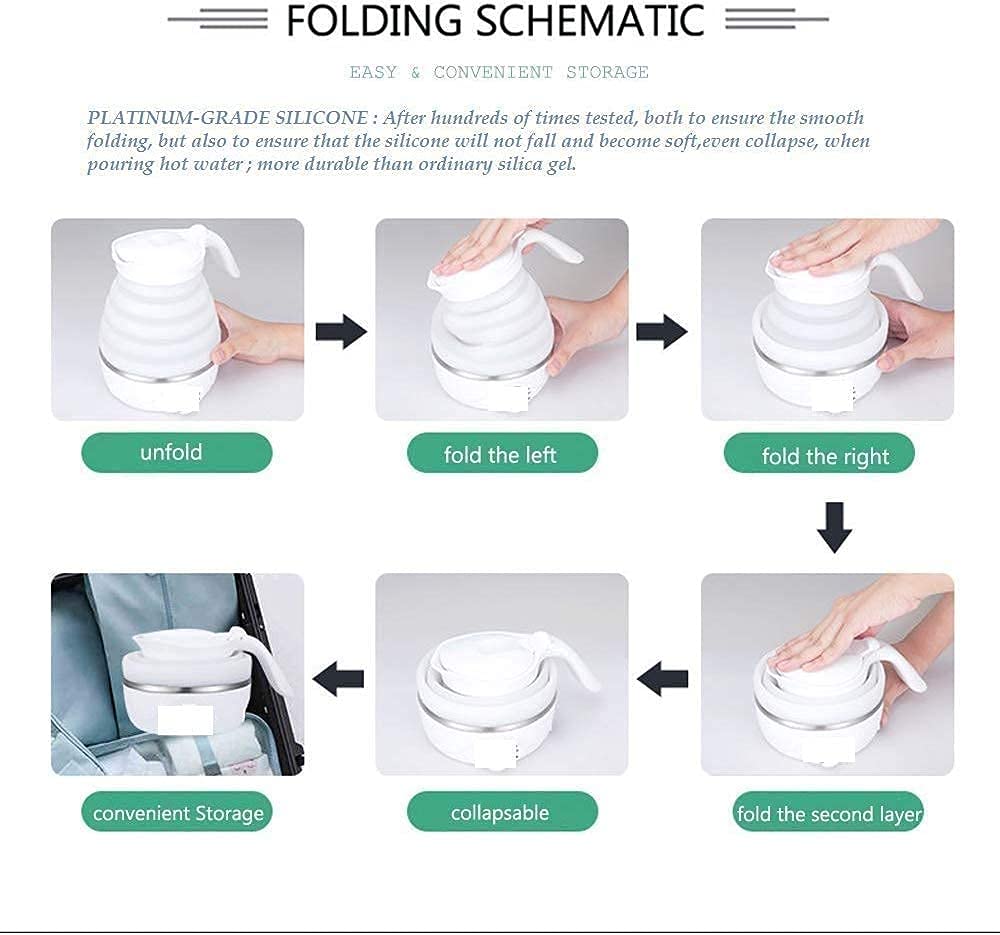 Giftock Travel Foldable Electric Kettle,Collapsible Electric Kettle Food Grade Silicone Small Electric Kettle Boiling Water, Used in Coffee,Tea,Milk,Dual Voltage(600ml,110-220V) (Multi Colour)