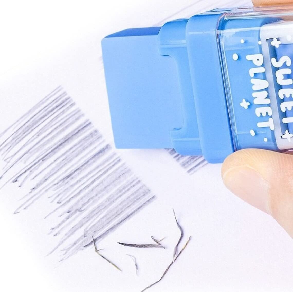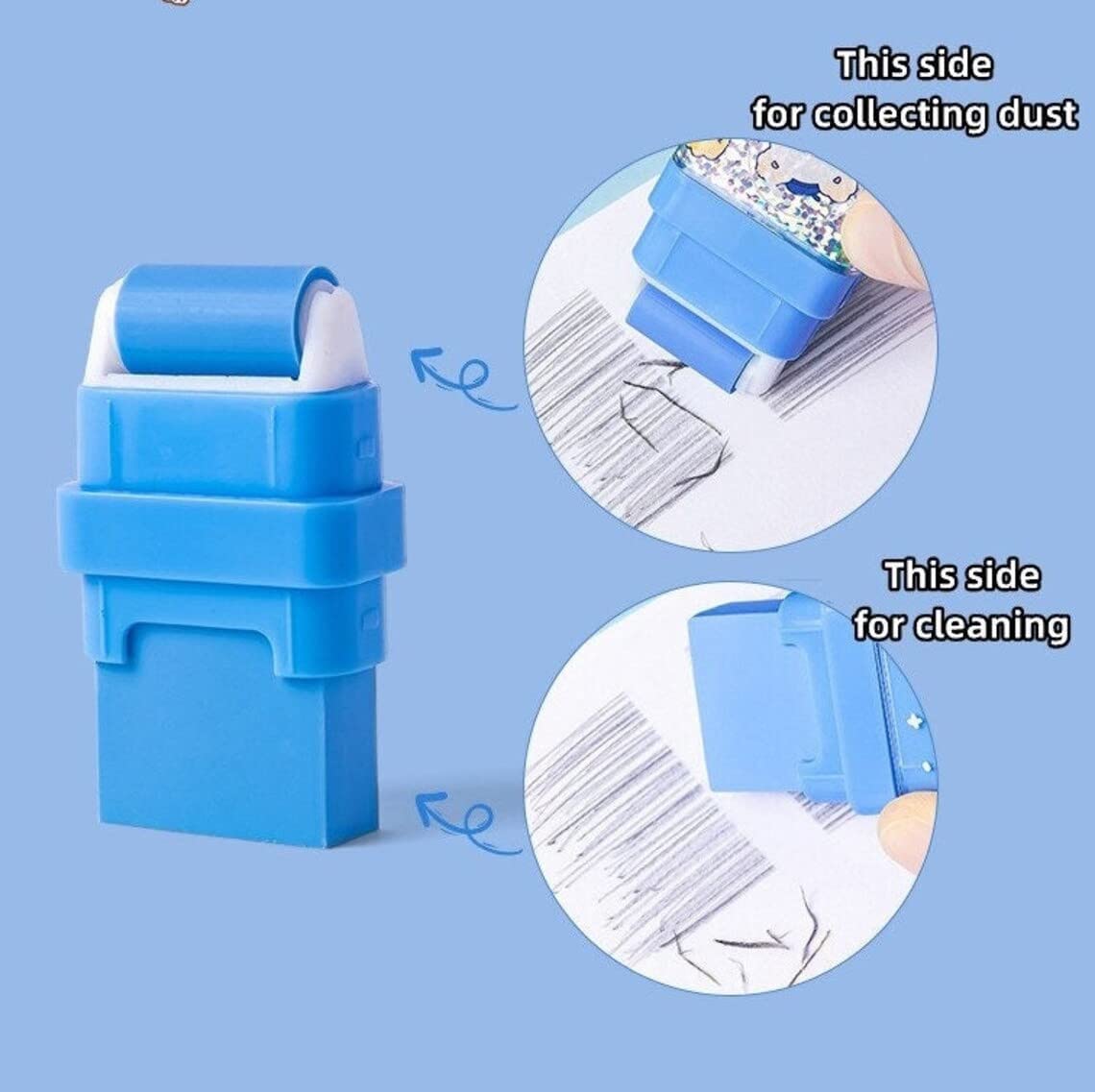 - ERASERS WITH COVER AND ROLLER This roller Pencil Erasers work well for its main purpose as an eraser. The opposite of an eraser is a roller which picks up the eraser "shavings" into its little garbage area, which not only keeps your room tidy but also a great fun for the work.