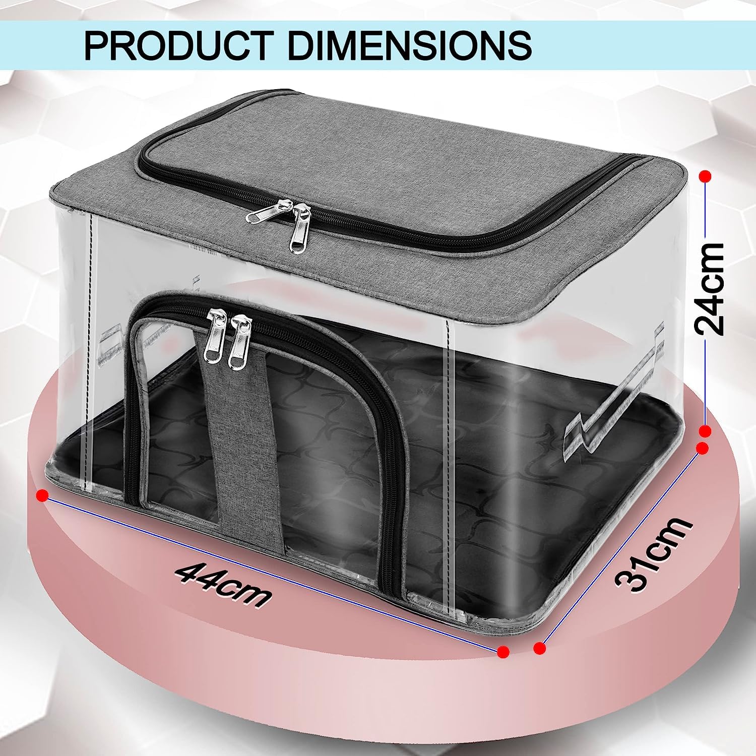 Giftock Nylon 33 L PVC Transparent Moisture Proof Storage box for Clothes Under-Bed Closet Wardrobe Organizer Bag for Clothes with Carry Handle (44 x 31 x 24 cm, Grey) (pack of 1)