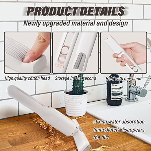 - Water stains are quickly removed with the dry and wet design, which is round push and pull with 180 degrees of powerful compression, washing and dehydration integration, and one-handed pulling squeeze. It can be used on a variety of desktops, windows, floors, kitchens, living rooms, and bathrooms.