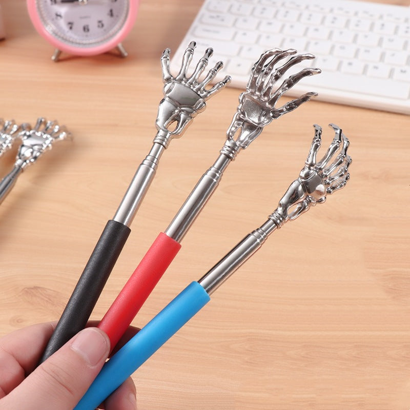 - The claw head of the scratcher can be used for scratching when the head, back, legs etc,itching,effectively solve the itching troubles,and the handle part can be used for body acupressure.Stainless steel back scratcher with telescoping handle, 7.87 inch retracted and 26.77 inch when fully extended.