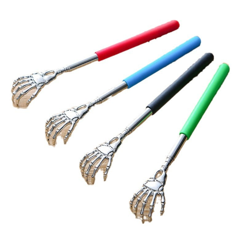 - Perfect for storage and travel, the small size of these collapsible back scratchers means you can take them with you anywhere. This extendable back scratcher is made from stainless steel that will never rust, bend, break, or deteriorate after long time use. The anti-slip handle is built from soft rubber and fits perfectly in your hand.