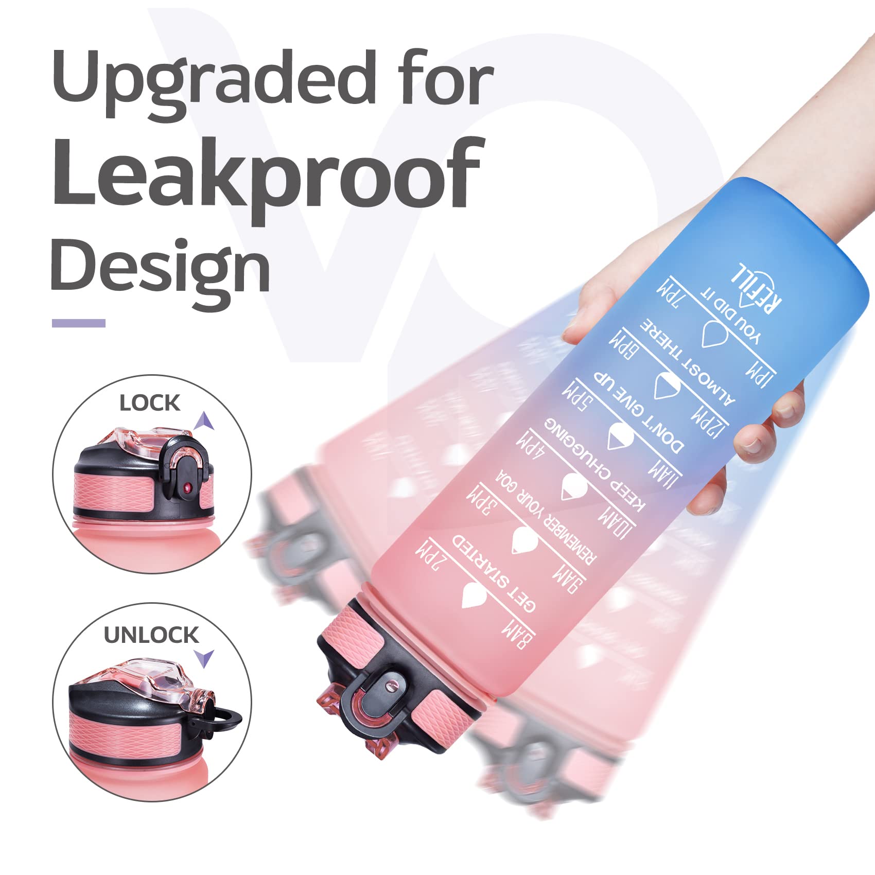- Leakproof Lid with Straw: features a pop-up silicone straw so that you can simply open the bottle with only one hand. Comes with a secure lid lock to keep it from opening accidentally.