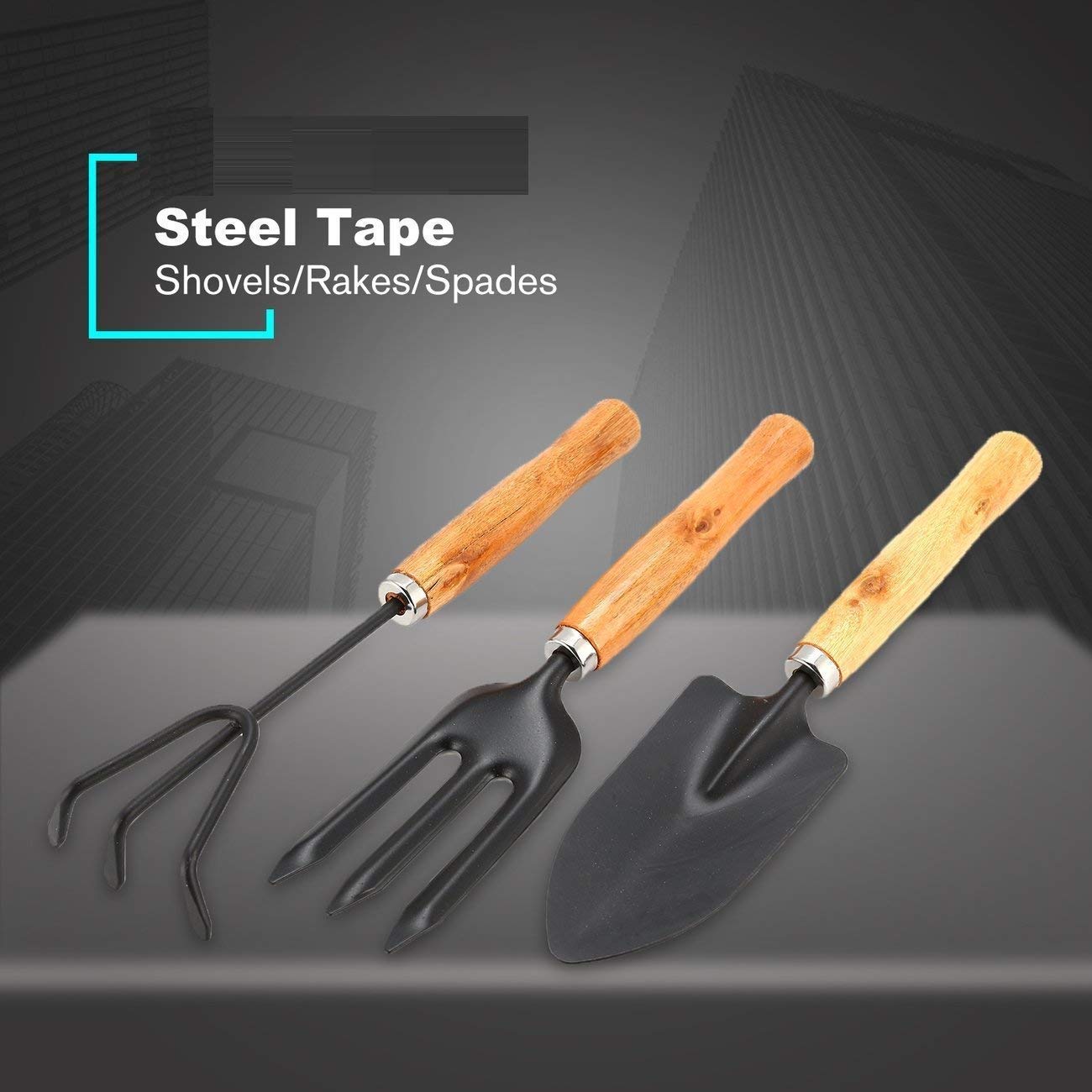 Mini Garden tools 3-Piece set includes a trowel, transplanter and rake, Ideal for a variety of tasks including digging, weeding, loosening soil, aerating, transplanting and more. Small and light weight for easy and convenient use. Perfect for Succulent Cactus Herbs or Other Indoor Miniature Plants. Material:Made of wood and iron,covered with anticorrosive paint,polished wooden. Solid metal construction with smooth-able wooden handles Material: Wooden and Steel, Rust Proof The Perfect Tool Set for All Your Gardening Needs Colour / Design based on Stock availability
